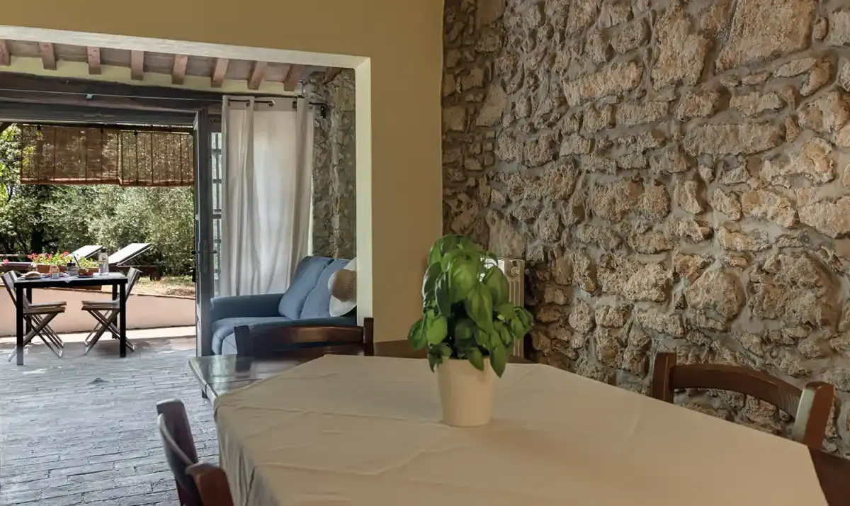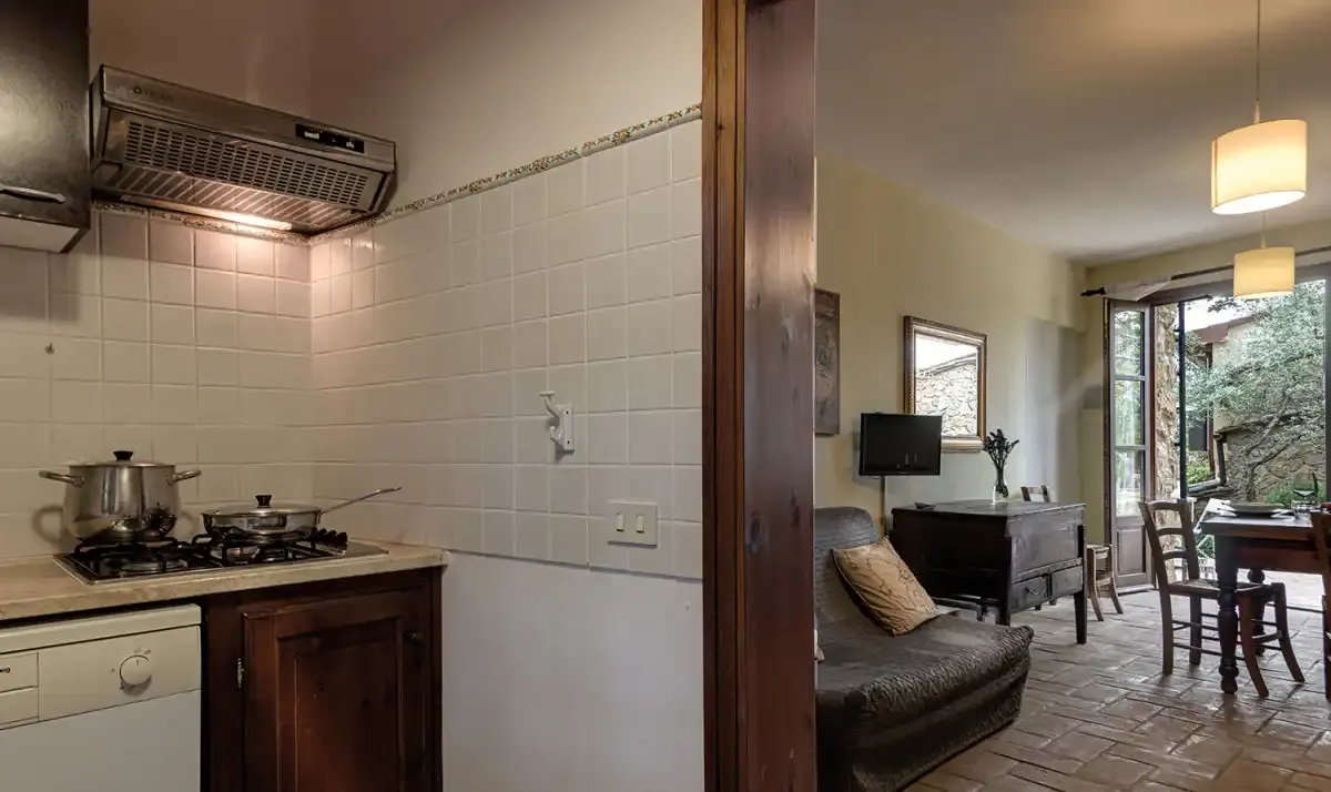 La struttura offre appartamenti ricavati da antichi casali in pietra, completamente ristrutturati nel rispetto della tradizione toscana. Gli alloggi, arredati in stile tipico con pavimenti in cotto e travi in legno a vista, dispongono di ingresso indipendente, cucina attrezzata e terrazza o giardino privato, ideali per una vacanza rilassante immersi nella natura.